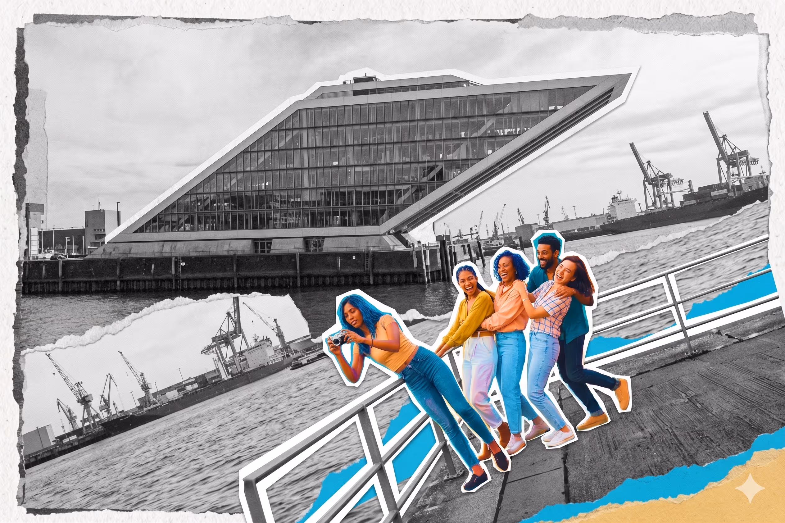 Take a photo of the Dockland building from the ferry as you pass by. Tilt the camera so that the building appears vertical, while your team on the ship looks like they are tipping sideways at a 60-degree angle.