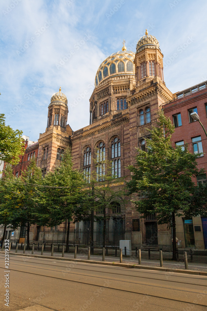 The golden dome of the New Synagogue is visible from afar and is one of Berlin's most magnificent buildings. It is a symbol of the revival of Jewish life in the city.