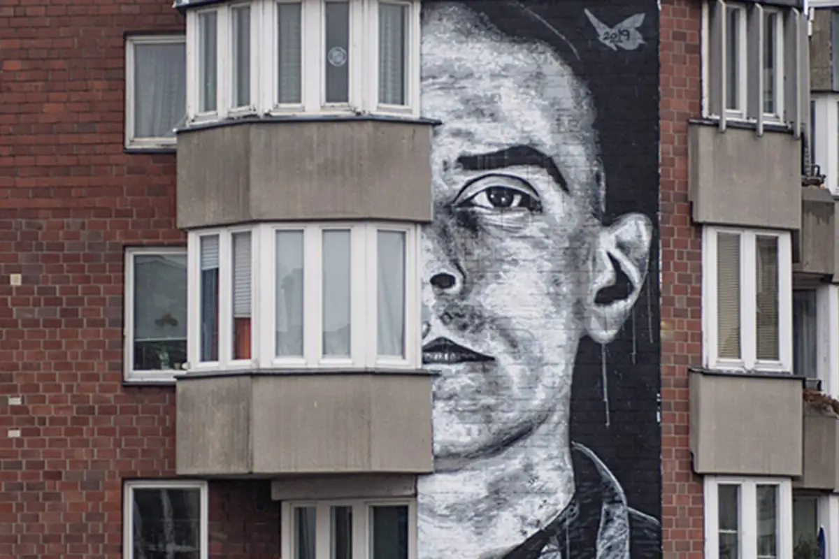 An der Fassade eines Mietshauses in der Bülowstraße 94 zeigt ein Wandbild Walter Degen, einen Mann, der während der NS-Zeit aufgrund seiner Identität verfolgt wurde. Es ist ein eindringliches Denkmal für jene, die einst zum Schweigen gebracht wurden.